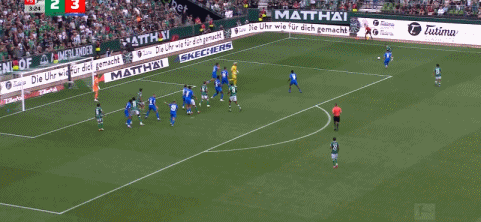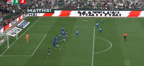 第90+5分钟,十人绝平,卡里姆-库利巴利卧射破门,不莱梅3-3