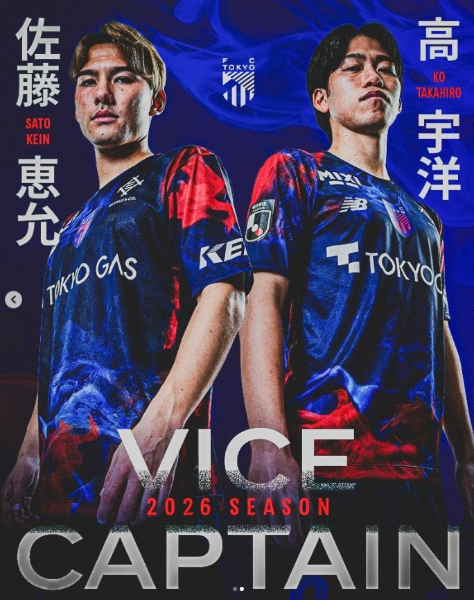 FC东京一线队2026赛季队长为室屋成,副队长为高宇洋、佐藤惠允。